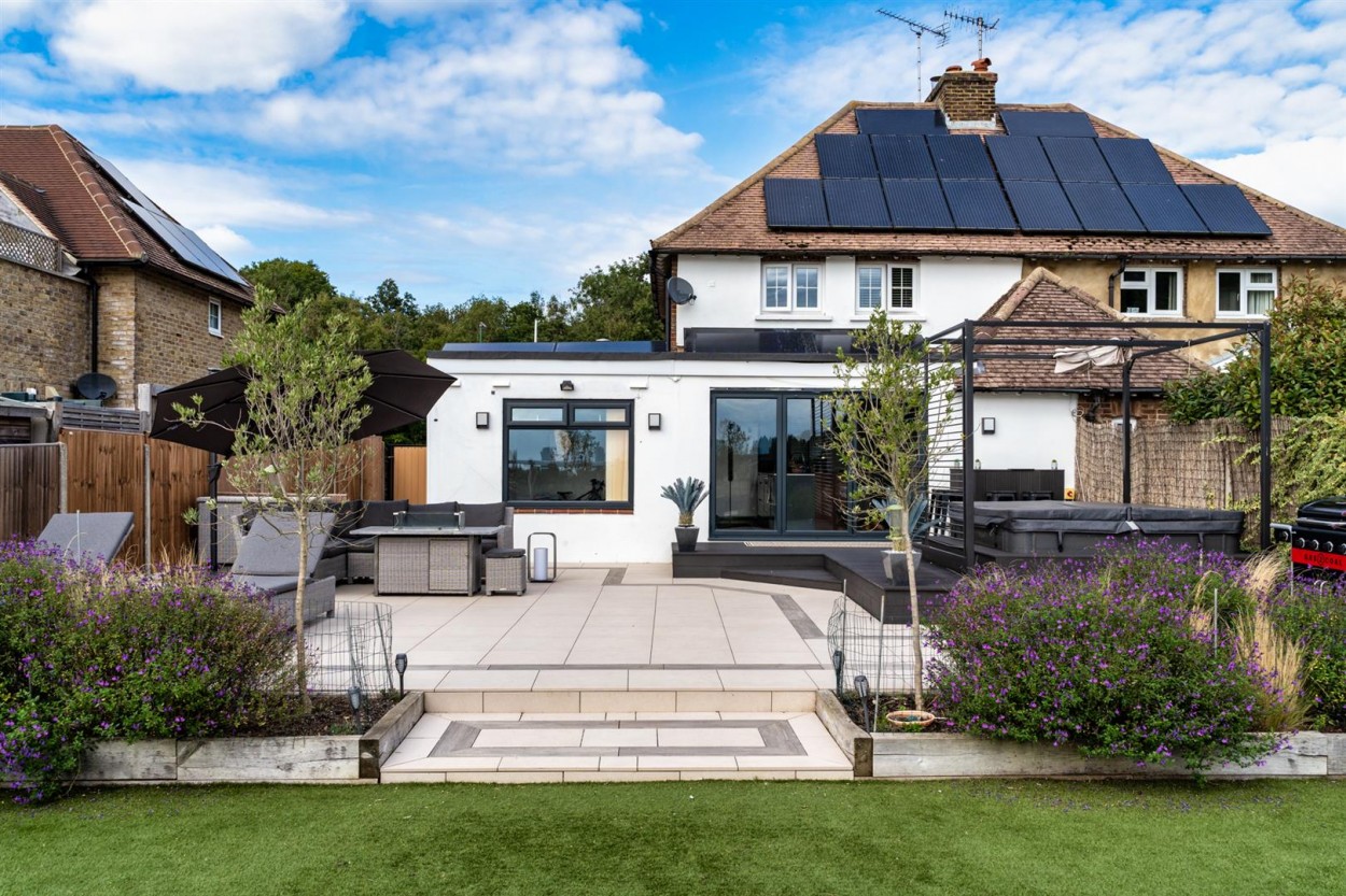 To the front and side of the property there is a large secure driveway, which is accessed via electric gates that provides off road parking for several vehicles, leading up to the integral garage.