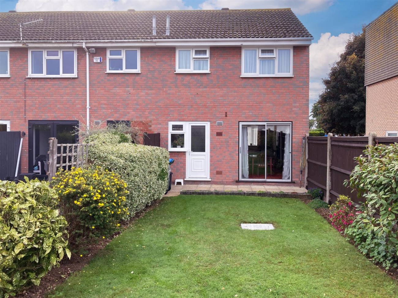 Outside, there is an enclosed rear garden which is mainly laid to lawn with a patio area. The garden also has an access gate in to the garage compound. The garage is located to the end of the row and has a re-felted roof (Jan 2022) and an up and over door . To the front, there is further garden which is laid to lawn with shrubs and bushes and is enclosed by a low level wall.