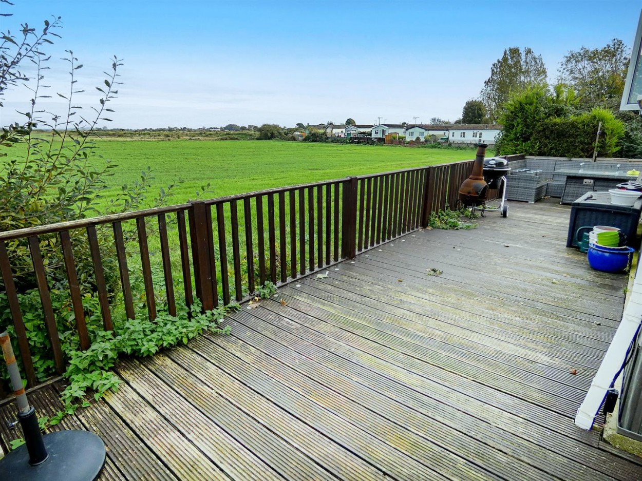Outside, there is surrounding decking with stunning views of fields towards Arundel and outside lighting. There is also a shed to the side with power and water with a driveway in front.
