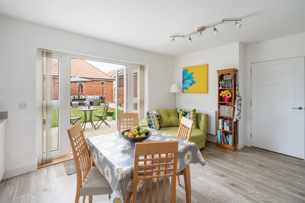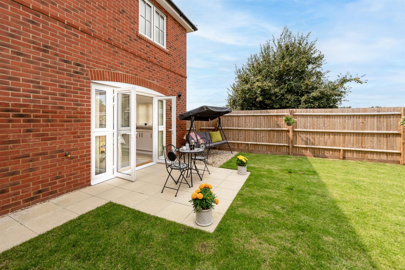 The property is in a secluded off-road position, over-looking what is to be a wildflower meadow and is accessed via a private block paved driveway. As you walk in, you are instantly welcomed by the light and airy entrance hall, which gives access to all principal rooms. The living room is a particular highlight, being dual aspect with a feature bay window boasting open farmland views. Furthermore, spanning the majority of the rear of the property there is a stunning kitchen/diner which offers an extensive range of units, which are all soft closing, a full range of integrated appliances, an integral nest of three drawers and a “Rangemaster” 1½ bowl ceramic sink unit with mixer tap. In addition to this, there is a separate utility room with an integrated washer/dryer and a ground floor cloakroom. To the first floor, there is a large landing with a built-in cupboard and access to four good sized bedrooms, with an en-suite shower room and built-in wardrobes to the master as well as a family bathroom. The property benefits from gas fired central heating, double glazing and the remainder of the builder’s warranty.
