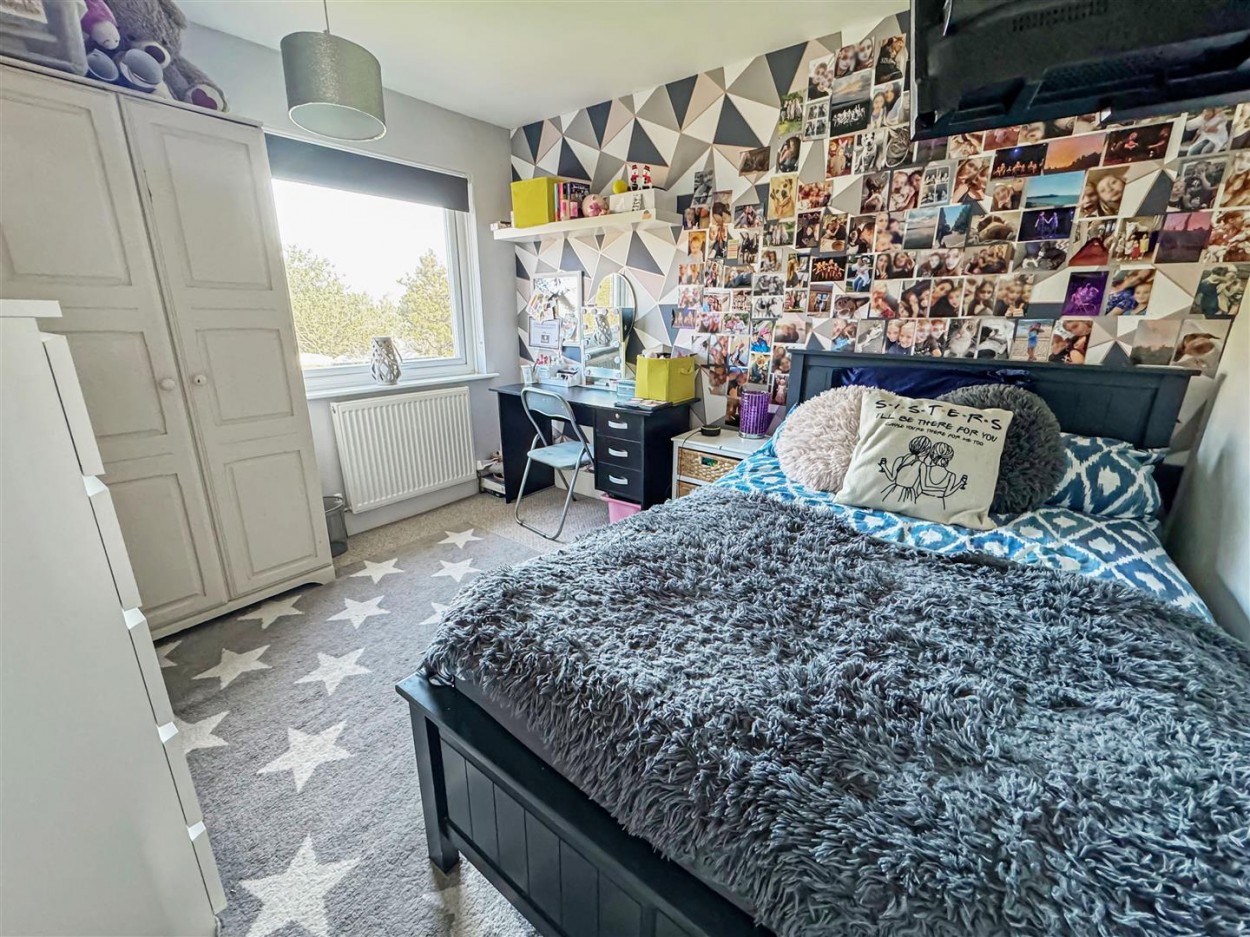 A particular feature to the property is the delightful rear garden, which is larger than average and is mainly laid to lawn with a patio area adjacent to the rear of the property. Running along the bottom of the garden is a lengthy driveway which leads up to a detached garage. The garden is fully enclosed with a side access gate. The front garden is predominantly laid to a shingled driveway providing off road parking for multiple vehicles. There is also a lawn area to the side. The front garden is partially open plan with the remainder being enclosed by hedging.
